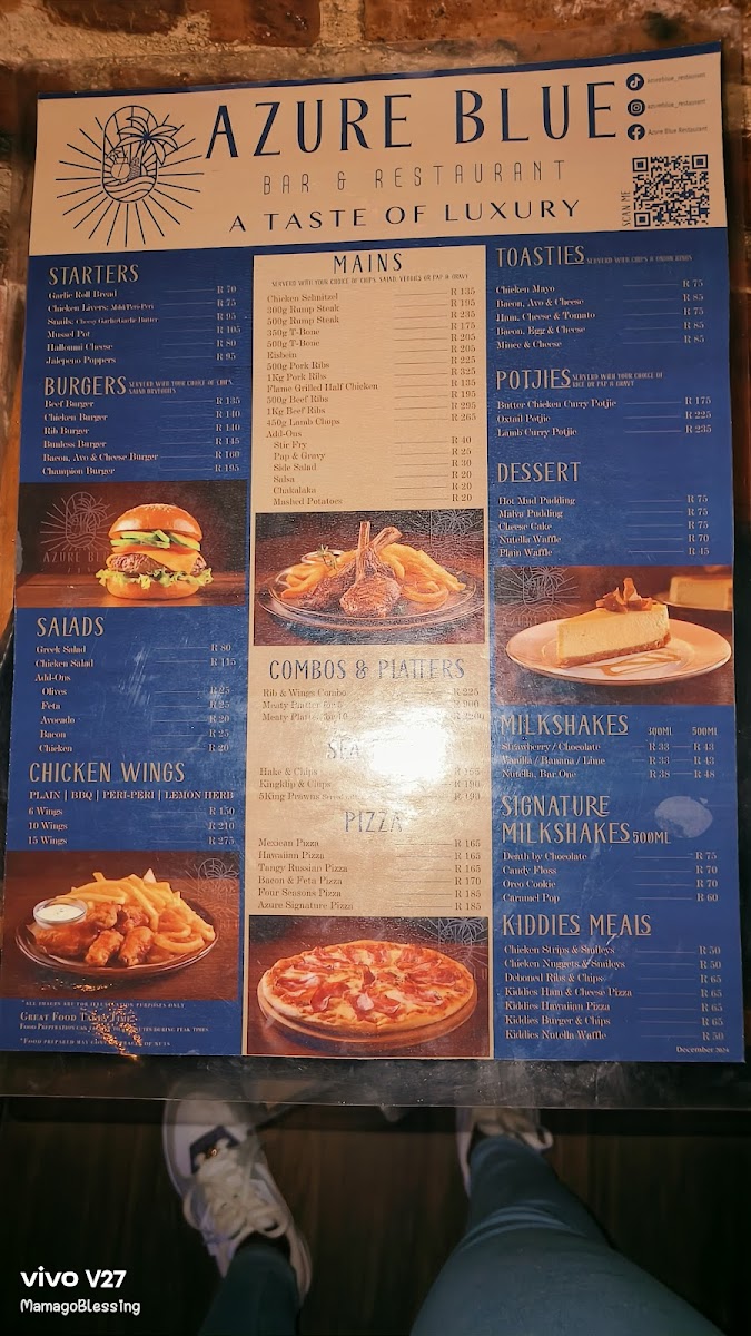 Welcome to AzureBlue Restaurant, the hidden gem at Waterfall Mall, Rustenburg. This culinary haven promises a delightful dining experience, showcasing a varied menu that caters to all taste buds.